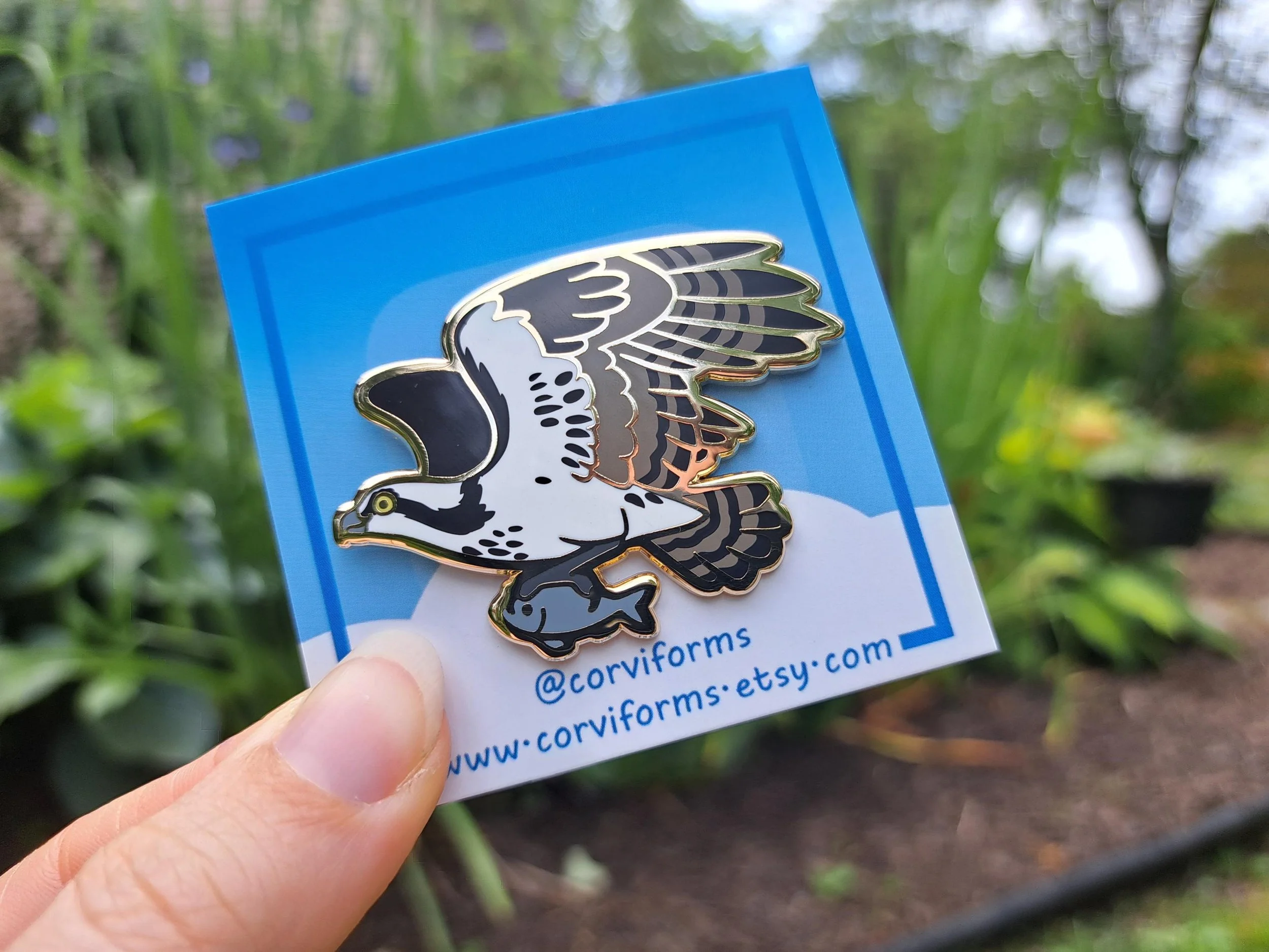 Corviforms Shop › Osprey x Trout Enamel Pin Osprey x Trout Enamel Pin $14.00 Hard enamel pin in gold metal with 2 posts with rubber backings. Approximately 1.75 inches wide. Hard enamel pin in gold metal with 2 posts with rubber backings. Approximately 1.75 inches wide. Add To Cart Added! Reviews Reviewer Name Review Date Star Rating Description Posted on Etsy Product Show More